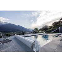 Bei dieser Abdeckung handelt es sich um eine einfache und verlässliche Lösung, um Ihren Pool mit einer Lamellenabdeckung auszustatten. Die Standfüße können Sie in verschiedenen Farben nach Ihren Wünschen und passend zu Ihrem Pool konfigurieren und damit ganz individuell gestalten. Die integrierte LED-Beleuchtung verschafft Ihrem Pool eine ganz besondere Note und ein modernes Ambiente. Die Beleuchtungsfarbe lässt sich je nach Stimmung anpassen.